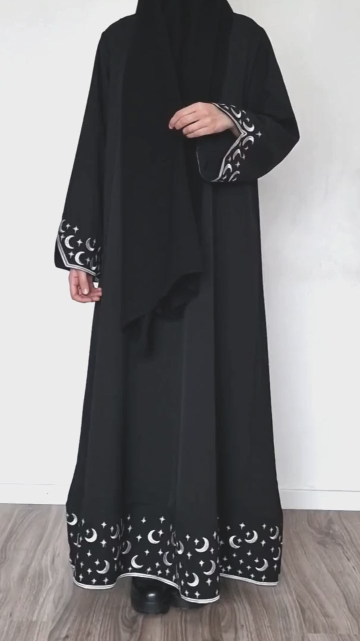 Diese exklusive, handgeschneiderte Abaya wurde von erfahrenen Schneidern mit höchster Präzision gefertigt und aufwendig mit kunstvollen Stickereien verziert. Das dezente, doch luxuriöse Design mit mondförmigen Stickdetails macht sie zum perfekten Begleiter für den Ramadan – sei es für das Tarawih-Gebet, den Iftar oder besondere Anlässe.