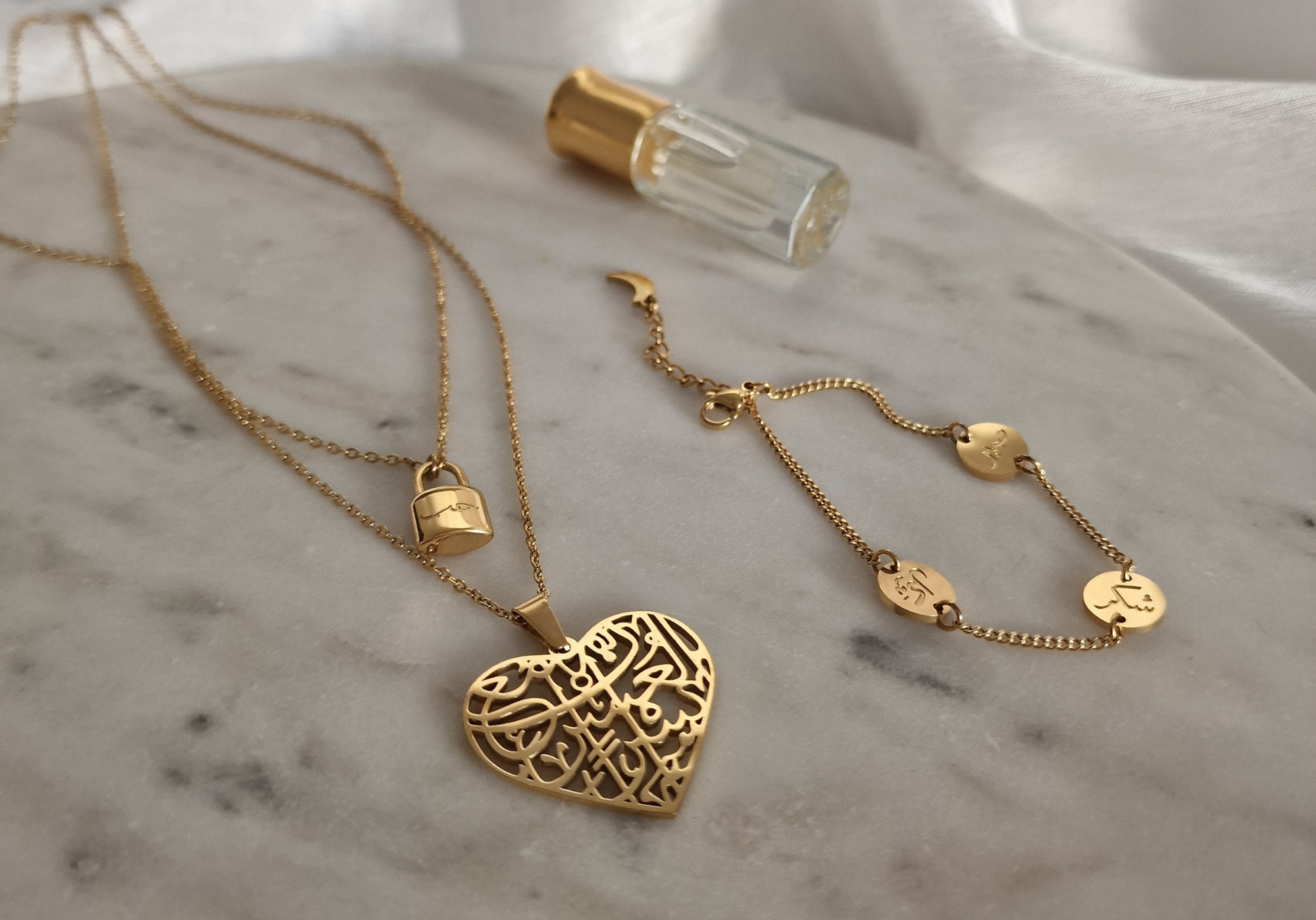 Beachte bitte, dass Schmuckstücke mit Koranversen vor dem Betreten der Toilette abgenommen oder unter der Kleidung versteckt werden müssen.